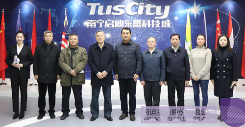 南寧市市長(zhǎng)、黨工委書(shū)記、五象新區(qū)管委會(huì)主任周紅波一行(前排左二)考察南寧·啟迪東盟創(chuàng)新中心