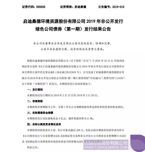 2019年啟迪桑德首單綠色公司債券成功發(fā)行打印