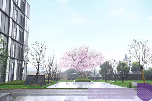 步入二期現場,映入眼簾的是生機勃勃的盎然綠意,紫荊花長廊更是自成一景,為園區辦公帶來大自然的清新與靈氣。