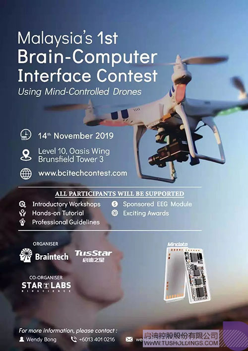 Braintech向與會的馬來西亞各高校大學(xué)生介紹:開幕儀式后,一系列的預(yù)熱與培訓(xùn)活動也將陸續(xù)登陸:推介會、講座、論壇、創(chuàng)意工坊等活動,讓參賽者更好地迎接比賽。比賽中,參與者需要用腦波控制無人機飛行10碼,并對儀器進行編程優(yōu)化,比賽中的優(yōu)勝者:冠軍將獲得3000令吉,亞軍2000令吉,季軍1000令吉,并設(shè)有5個鼓勵獎(500令吉)。