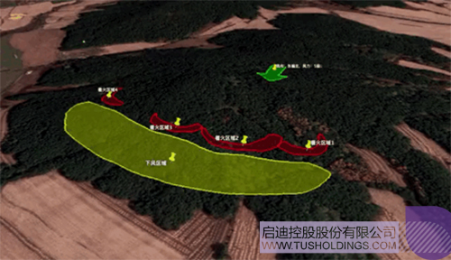 森林火情發生時,火勢兇猛,人員無法靠近,救援人員難以迅速掌握整個火場形勢,因此在制定救援方案上會受到很多約束。如果此時快速獲得火場態勢圖,即集合三維地理信息、風力風向氣象信息、火情火勢信息、人員分布信息等重要因素于一體,則可以全面掌握整體情況。風向突變是造成森林消防員意外死亡的重要因素,通過態勢圖可以評估下風方向危險區域,推演出火情走向趨勢,根據火場附近村莊或建筑分布制定出疏散和撲打計劃,為決策提供及時準確的信息支撐,同時會在滅火救援上也會減少不必要的犧牲。