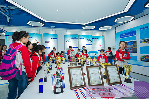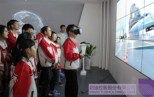 在啟迪控股數字展示中心學生們體驗前沿科技產品