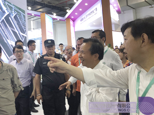 生態(tài)環(huán)保部部長李干杰(右二)到浦華環(huán)保展區(qū)參觀指導