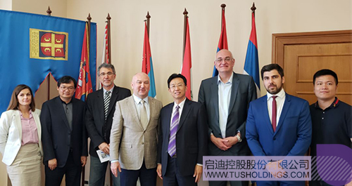 塞爾維亞國家創新和科技發展部部長奈納德·波波維奇(左四)會見啟迪控股代表團