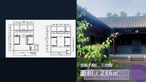◆ 總部及研發(fā)小院12棟,分別為創(chuàng)新小院D和創(chuàng)新小院E,面積約3300平米,其中獨棟四合院一套,獨棟三合院11套;