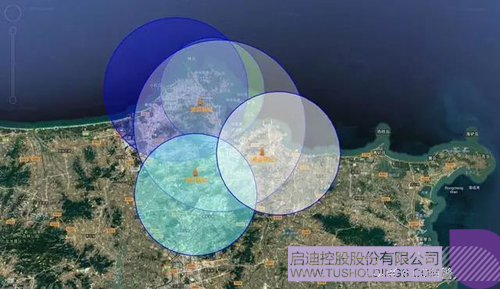 漫游基站部署示意圖:通過在城市不同區域高點部署漫游基站,實現全域信號鏈接