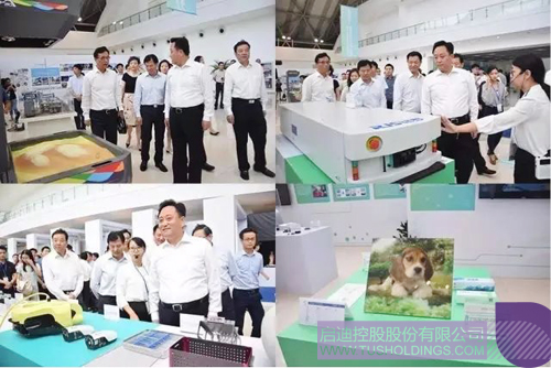 會前,與會領導一行還前往G60科創走廊雙創成果展參觀考察了最新的科技創新成果、先進的雙創事跡、高校師生的雙創成效等。與會領導分別駐足觀摩了上海莰拓教育科技有限公司、上海彩丞新材料科技有限公司、鋱羅(上海)機器人科技有限公司、悠迅動力科技(上海)有限公司、上海岐華醫療科技有限公司等啟迪漕河涇(中山)科技園入駐區企業的產品展示,對企業產品予以高度認可。