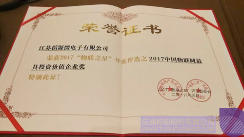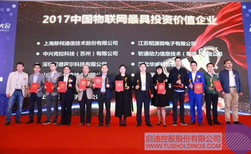 啟迪控股成員江蘇稻源微電子榮獲大會頒發的“2017中國物聯網最具投資價值企業”獎項。