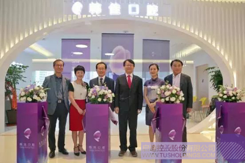 韓國(guó)前總理李海瓚(左三)和蘇州啟迪常務(wù)副總經(jīng)理、韓佳口腔董事長(zhǎng)華瑩(左二)等