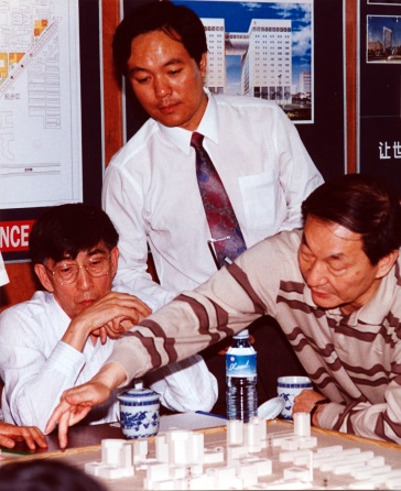 1996年,在清華科技園建設初期,時任國務院副總理朱镕基在聽取時任清華大學校長王大中院士(左),清華科技園發展中心主任、啟迪控股榮譽董事長梅萌(中)的工作匯報。
