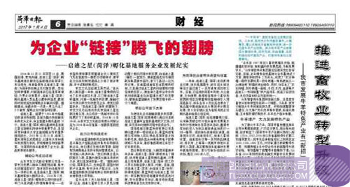菏澤日報財經(jīng)版刊登啟迪之星(菏澤)報道