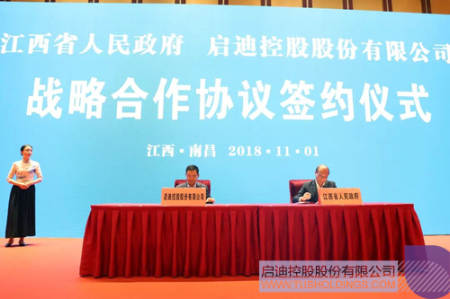 11月1日下午,啟迪控股與江西省人民政府在南昌簽署戰略合作協議,江西省省長易煉紅、啟迪控股董事長王濟武出席致辭,并為“啟迪未來科技(江西)有限責任公司”揭牌。