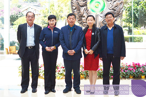 趙德光書記(前排左二)陪同袁桅總裁(前排左一)一行參觀