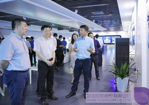 趙長山董事長(左二)一行參觀考察啟迪控股數(shù)字展廳