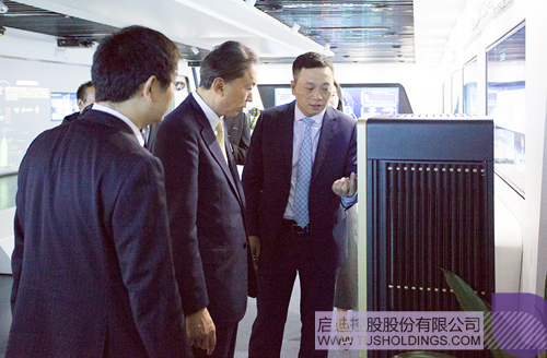 座談前,鳩山由紀夫參觀了啟迪之星孵化器和啟迪控股數字展廳,詳細了解啟迪獨特的創新孵化模式、“科技園區、科技實業、科技金融”三位一體業務模式以及啟迪在環保領域的布局發展情況?;趩⒌现浅晒Φ倪\營經驗和龐大的創新網絡,鳩山由紀夫表示歡迎啟迪之星去日本落戶。