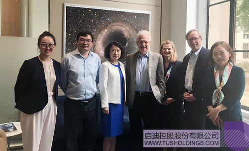 啟迪控股總裁袁桅(左三)一行和MIT副校長(zhǎng)Greg Morgan、副教務(wù)長(zhǎng)Richard Lester合影