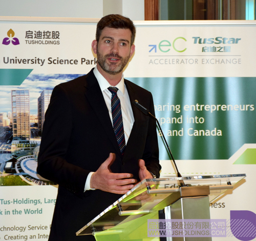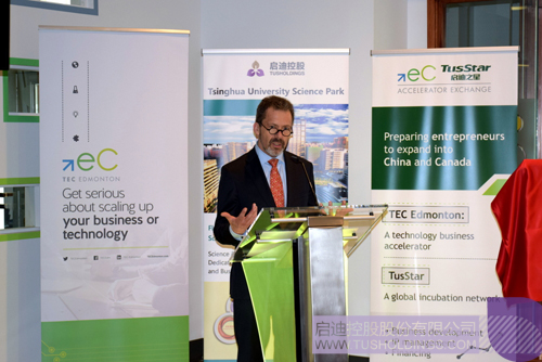 Chris Lumb在致辭中指出,要實(shí)現(xiàn)規(guī)模性擴(kuò)張,阿爾伯塔省必須走向全球。啟迪之星(埃德蒙頓)可以讓加拿大的企業(yè)更有效了解中國和進(jìn)入中國市場。